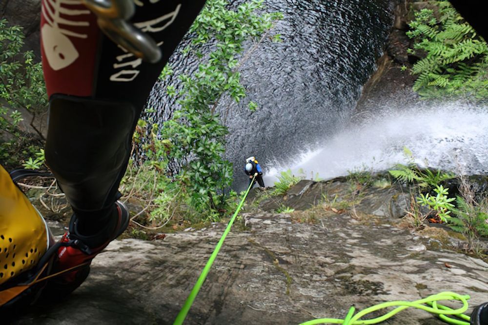 Such canyons are of high difficulty and are aimed to those who regularly practice this activity. These canyons, situated on the North Coast of Madeira, are located in the heart of the Laurissilva Forest where nature is found in its purest state. It has a 1h20m uphill approach, and lasts approximately 4 to 5 hours with a 30 minutes return. In order to book this canyoning is necessary that you have done the moderate tour with us before, or present a proof of the equivalent level of experience.